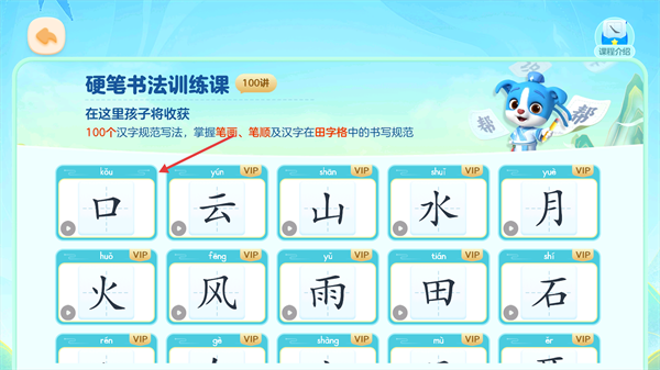 1、在底部找到【學(xué)寫字】功能入口點(diǎn)擊,進(jìn)入課程頁面。