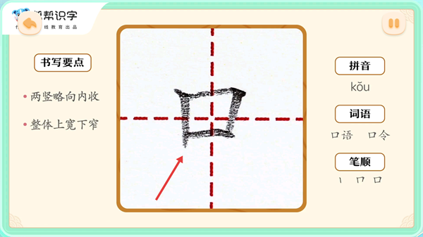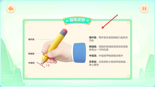4、學(xué)習(xí)握筆姿勢(shì)后,可查看漢字的書寫要點(diǎn)。