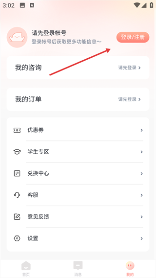 2、點擊右上角的【登錄/注冊】按鈕,進入賬號登錄界面。