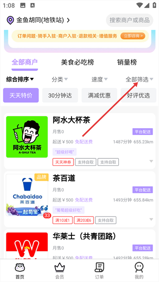 倉鼠外賣怎么篩選店鋪