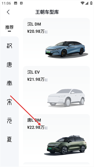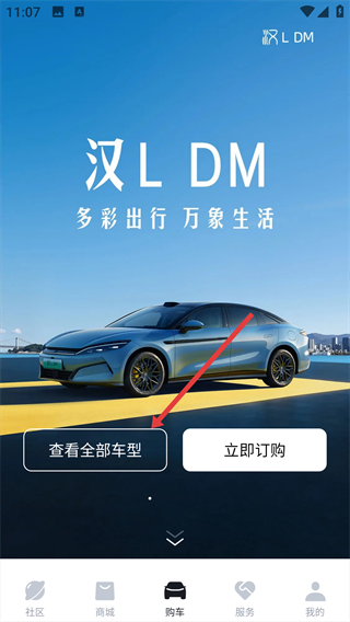 1、在展示【漢LDM】的界面中,點擊【查看全部車型】按鈕。