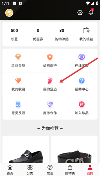 2、在個人中心頁面,找到“我的足跡”選項并點擊。