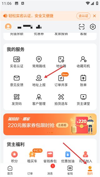 1、進(jìn)入【我的】頁面,在“我的服務(wù)”板塊中點(diǎn)擊【地址上報(bào)】。