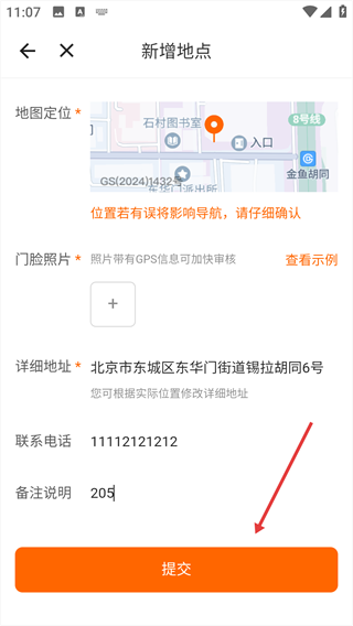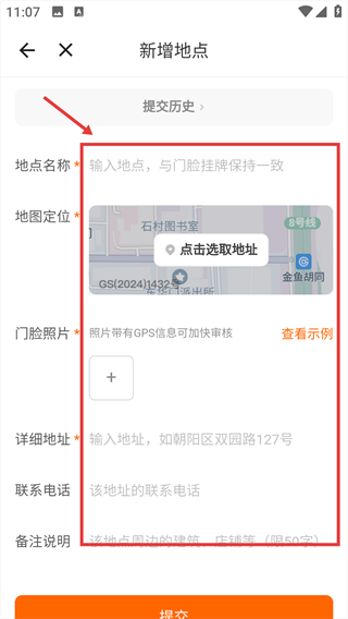 3、填寫地點(diǎn)名稱、地圖定位、門臉照片、詳細(xì)地址等內(nèi)容。