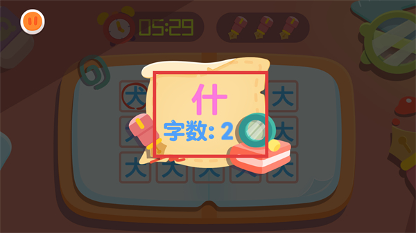 2、進入關卡后會看到目標字提示,像【什】-字數:2,記好目標字就能開始在網格里尋找啦。