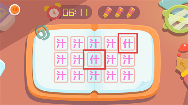 3、在文字網格中找到與其他字不同的【什】,點擊對應的格子就能完成識別,繼續找剩下的目標字哦。