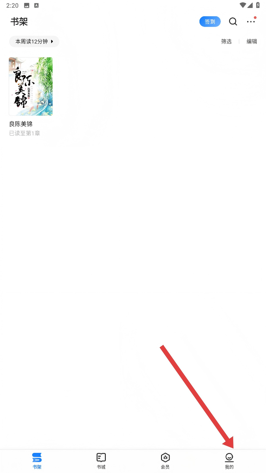 1、我們在書架界面,點擊右下角【我的】,開啟退出登錄的操作流程呀。