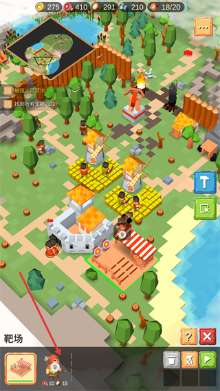 2、紅箭頭指向靶場建筑,建造該建筑解鎖遠(yuǎn)程單位訓(xùn)練功能。