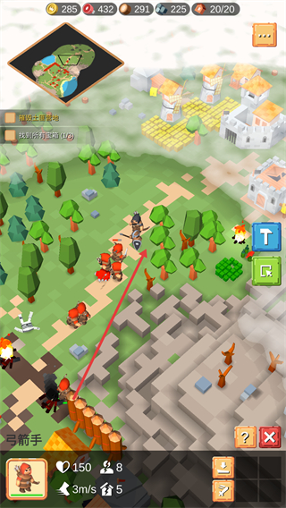 3、紅箭頭指向弓箭手部隊,操控其遠(yuǎn)程攻擊壓制敵方目標(biāo)。