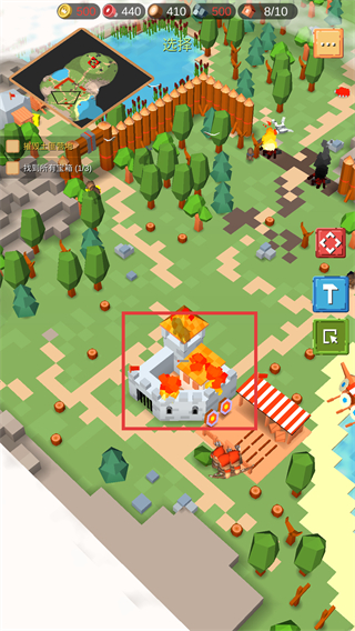 4、紅框標(biāo)注著火的城堡建筑,優(yōu)先攻占該建筑掌控核心區(qū)域。