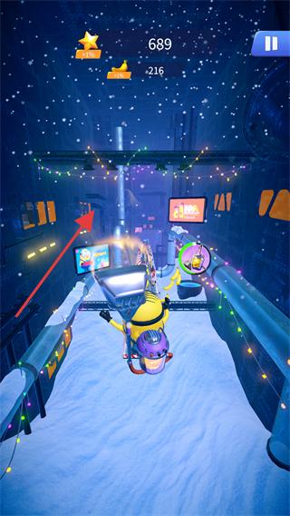 4、從通道滑出后進(jìn)入新賽道區(qū)域,繼續(xù)收集道具,星星積分到【689】、香蕉積分升為【216】。
