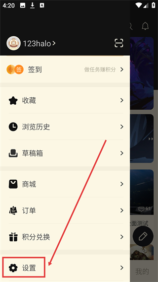 1、在【首頁】點擊左上角菜單按鈕,展開側(cè)邊欄界面,可查看簽到、設置等個人功能入口。