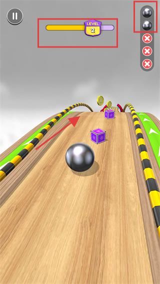1、動態賽道設計:每條賽道都設有突然下落的障礙與傾斜木板,需要及時調整滾球角度來保持平衡,直道與彎道的交替出現形成多變挑戰。