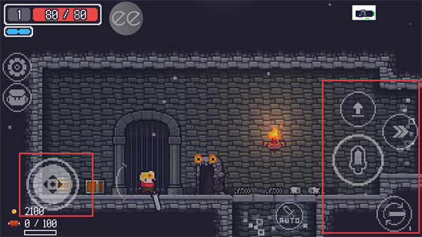 2、在地牢中通過左側方向鍵控制角色移動,右側技能按鈕(如攻擊、跳躍等)進行戰斗和探索。