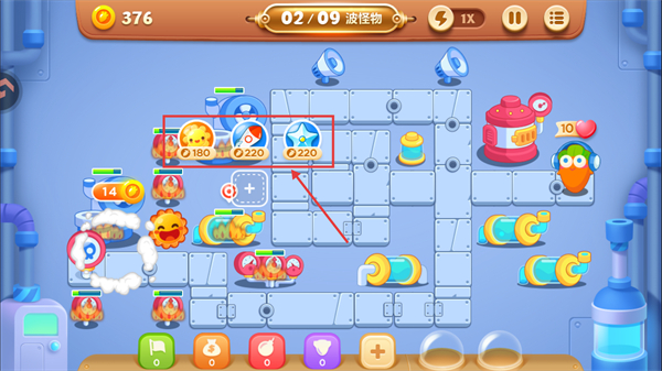 1、在關卡戰斗中,優先選擇【180】-【220】-【220】數值的炮塔放置在關鍵路徑旁,有效阻攔怪物推進節奏,提升防御效率。