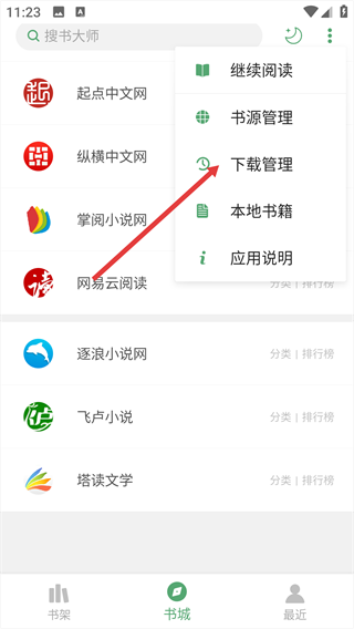 2、在操作菜單中選擇“下載管理”選項(xiàng),進(jìn)入已下載書籍的管理頁面。
