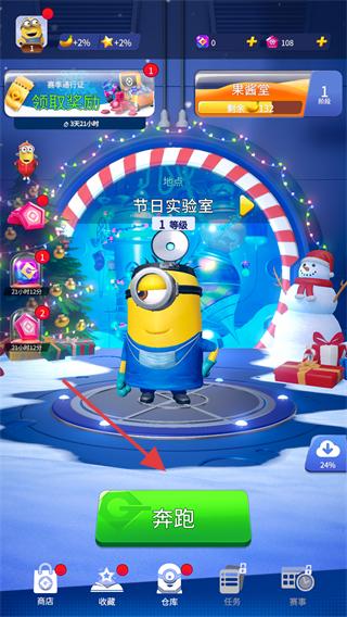 2、在【節日實驗室-1等級】場景中,點擊【奔跑】按鈕,開啟新一輪的跑酷挑戰。