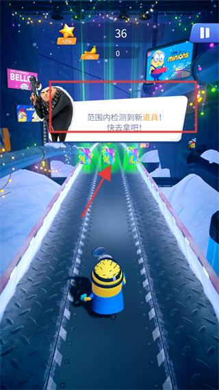3、跑酷出現【范圍內檢測到新道具!快去拿吧!】提示,沿賽道前進尋找并拾取新道具。