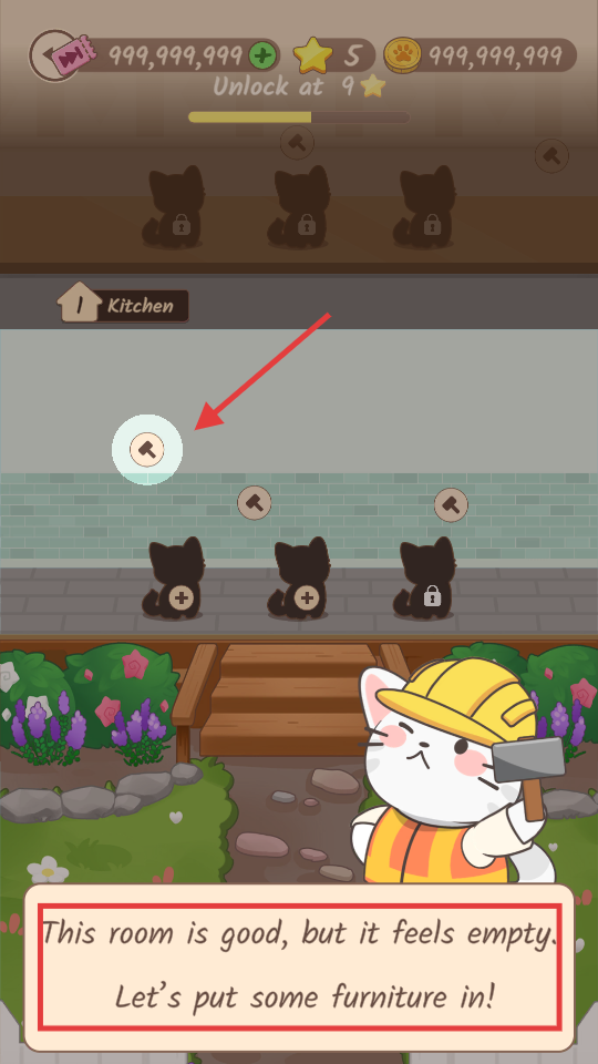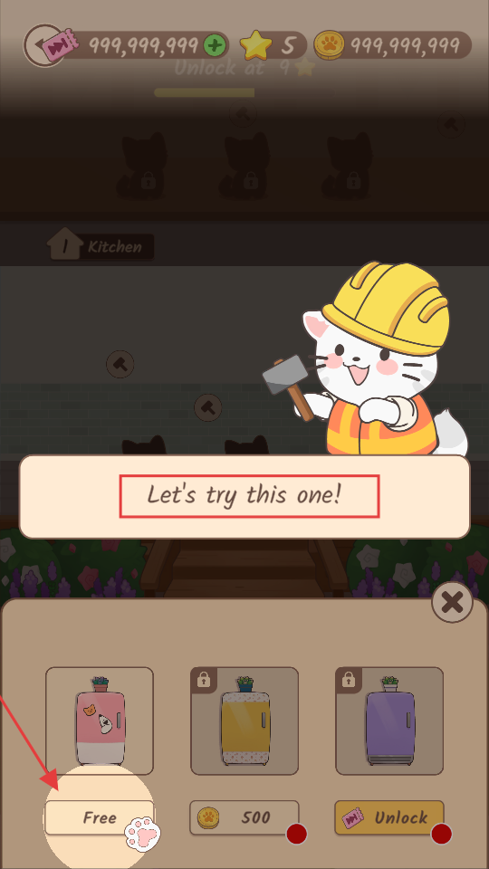 2、在【Kitchen】場景中點擊對應位置添加家具,讓房間更豐富,解鎖新的貓咪居住位置及互動場景。
