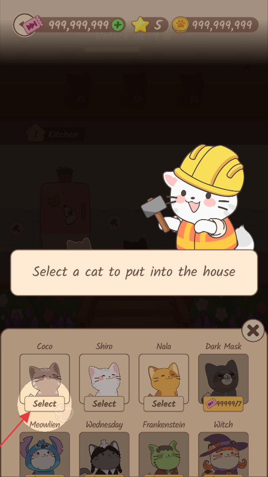 4、布置好房間后選擇貓咪如【Coco】放入,解鎖貓咪在房間內的互動玩法和后續任務。