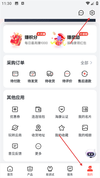 1、在“我的”選項,點擊右上角的“設置”圖標,進入設置界面。