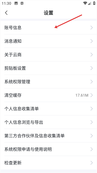 2、選擇“賬號信息”選項,進入賬號管理頁面。