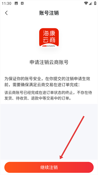 4、確認滿足注銷前提后,點擊“繼續注銷”按鈕,按照提示完成賬號注銷。