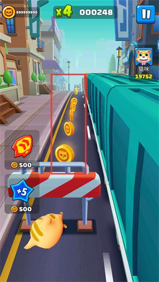 2、出現長段載具(如列車)時,可借助載具頂部的路徑奔跑,既能避開地面障礙,又能收集上方金幣。