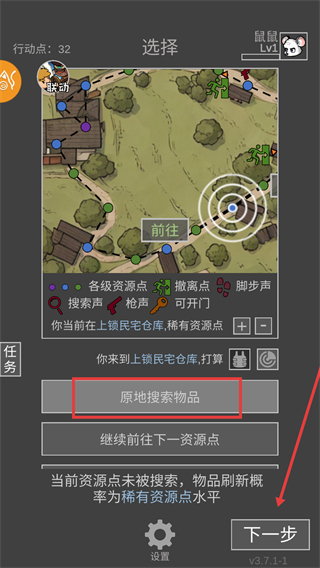 1、選【原地搜索物品】,點擊【下一步】確認操作。