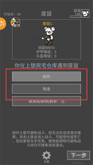 2、在【上鎖民宅倉庫】遇匪鼠1,可選【繞開】【攻擊】等應對方式推進。