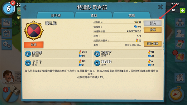 4、在特遣隊詳情頁,點擊【加入】按鈕,完成特遣隊加入操作。
