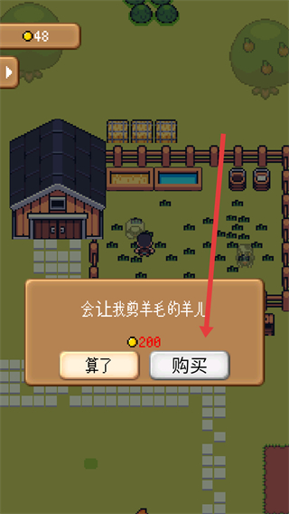 4、在彈窗中選擇會讓我剪羊毛的羊兒,消耗200金幣點擊購買獲取動物。