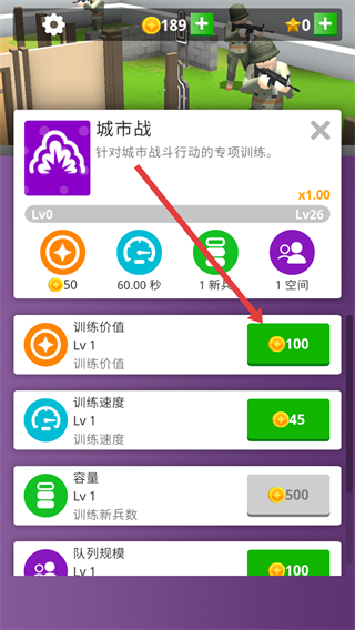 3、消耗金幣點擊訓練價值升級按鈕,提升設施效率。