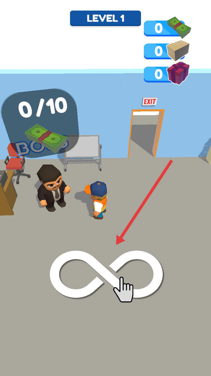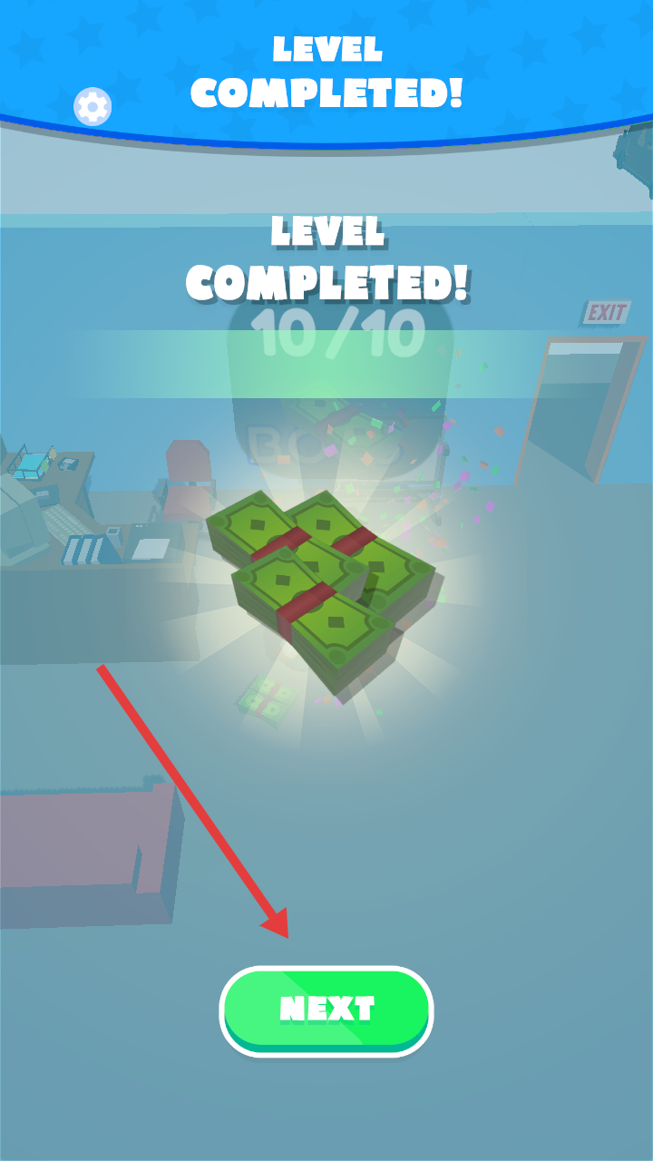 4、關卡完成后點擊NEXT按鈕進入下一關,繼續挑戰更多辦公室場景的箱子搬運任務,提升搬運效率。