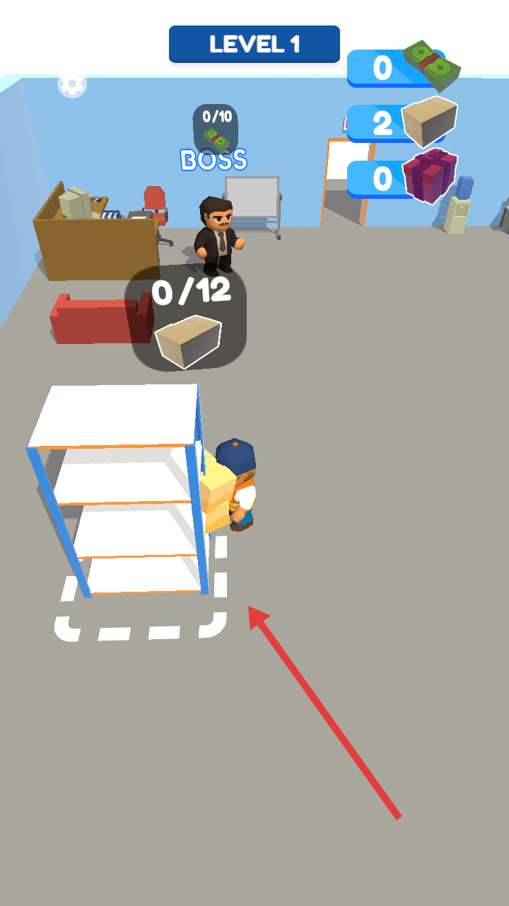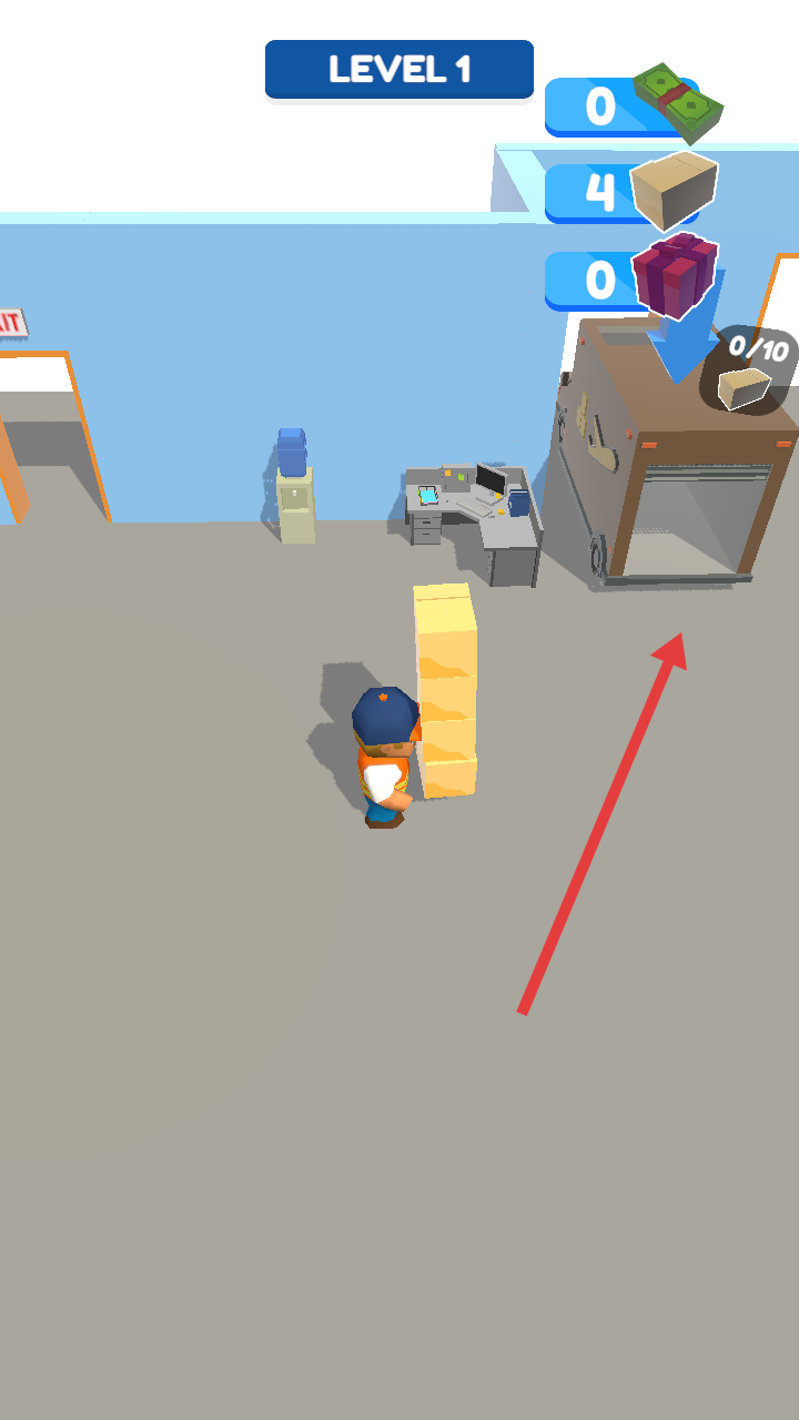 1、點擊開始按鈕,在辦公室場景中操控角色,開啟搬運箱子完成任務的挑戰。