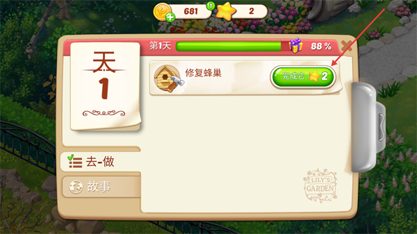 1、紅框指向【去完成】按鈕,完成【修復蜂巢】任務提升進度。