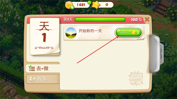 3、點擊【去完成】按鈕,完成【開始新的一天】任務結束首日流程。