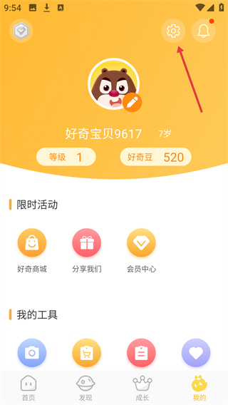 2、進(jìn)入【我的】頁(yè)面后,點(diǎn)擊右上角的【設(shè)置】圖標(biāo),即可進(jìn)入設(shè)置界面。