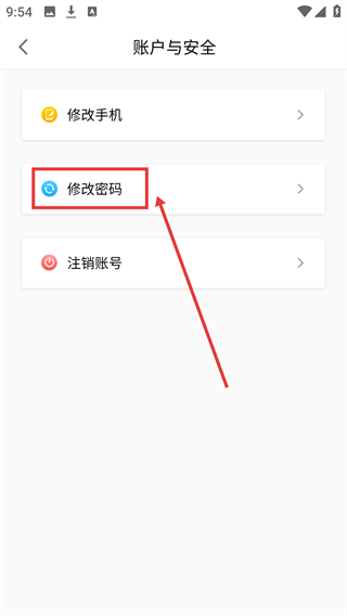 4、進(jìn)入【賬戶與安全】頁(yè)面后,可點(diǎn)擊【修改密碼】選項(xiàng)進(jìn)行密碼修改操作。