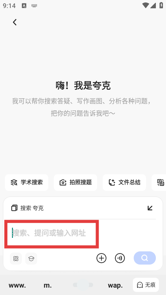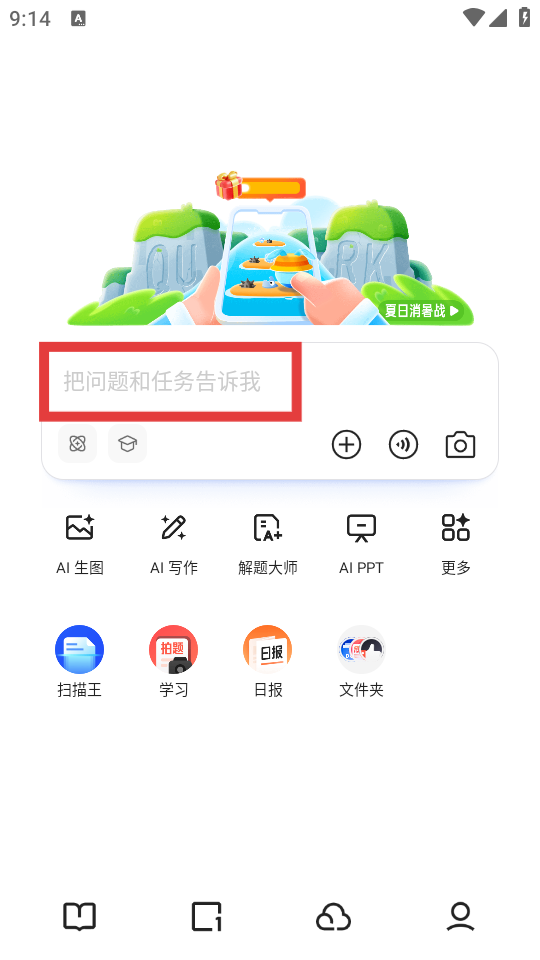 1、打開夸克APP,點擊首頁【把問題和任務告訴我】搜索框。