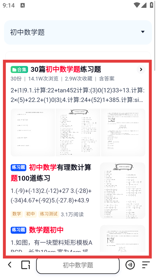 4、在搜索結果頁面查看相關內容,找到適合的【初中數學題】習題資源。