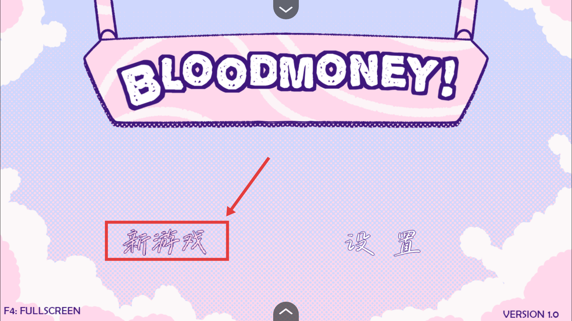1、進入游戲主界面,點擊【新游戲】開始游玩,在【BLOODMONEY】中開啟劇情,積累資源推進后續任務。