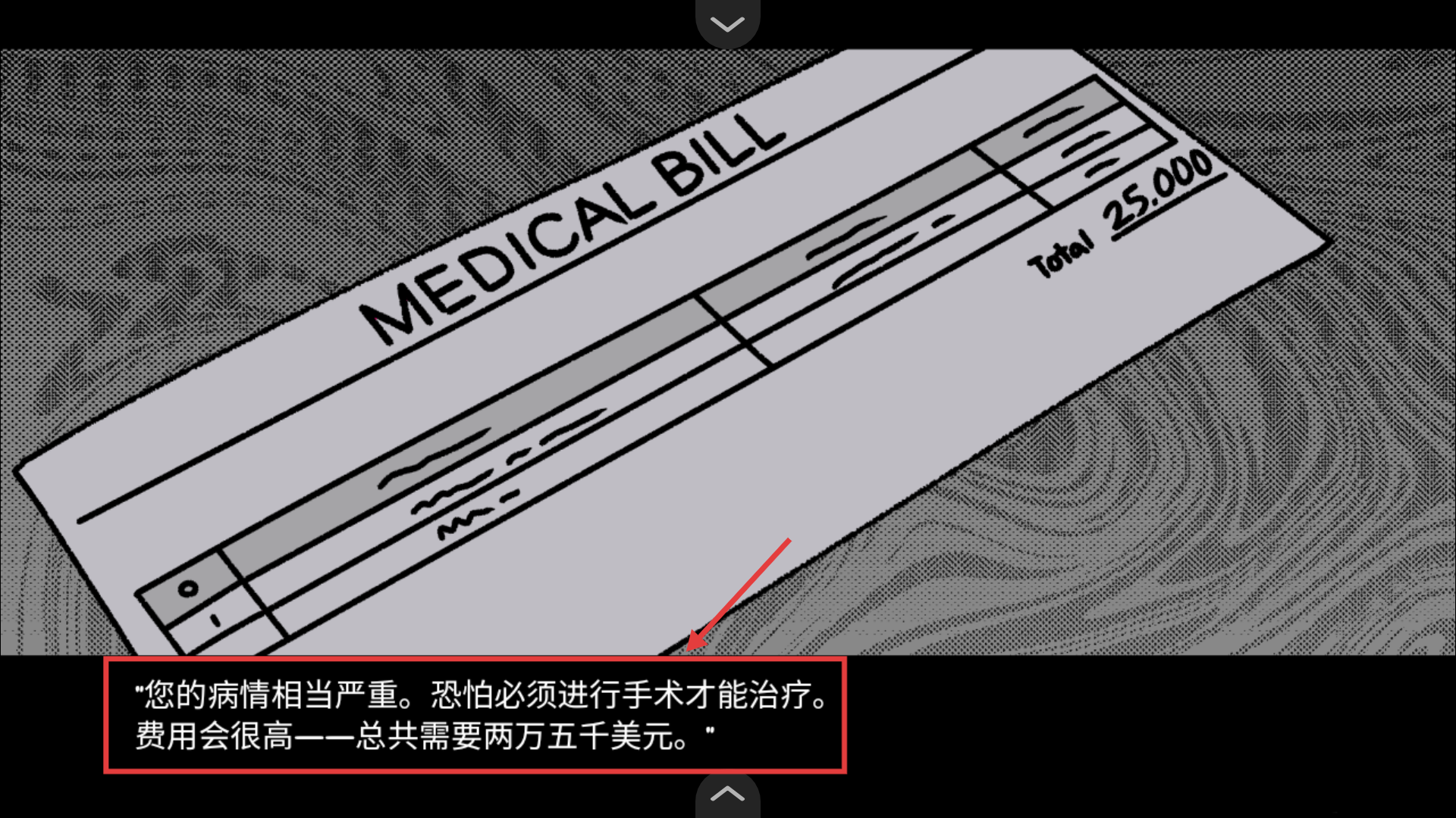2、看到醫療賬單后,明確需籌集【25000】美元手術費,這是前期核心目標,需通過操作積累對應資金。