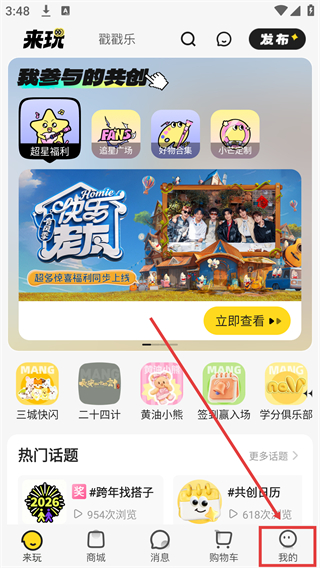 3、點擊下方菜單欄中的“商城”選項,進(jìn)入到新界面之后,這里擁有很多明星周邊、同款等物品。