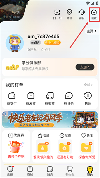 2、在個人中心頁面的右上角區(qū)域,找到【設(shè)置】按鈕并點擊,進(jìn)入包含多種功能選項的設(shè)置界面。