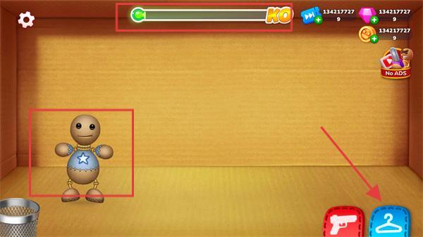1、點(diǎn)擊界面右側(cè)的道具按鈕,選中對應(yīng)工具,可對場景中的木偶人發(fā)起攻擊操作。