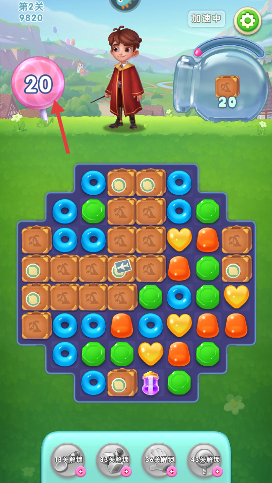 2、持續消除元素,觀察右上角收集方塊數量變化,逐步完成收集目標。