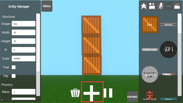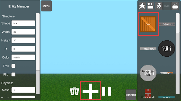 3、在【Lawn】場景中,通過點擊【+】按鈕堆疊【box】模塊,搭建豎狀木板結構,熟悉模塊拼接邏輯。