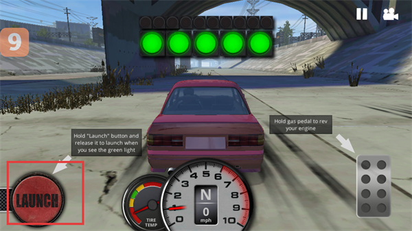 3、根據提示,按住【LAUNCH】按鈕,在綠燈亮起時釋放,實現賽車的快速啟動,爭取比賽優勢。