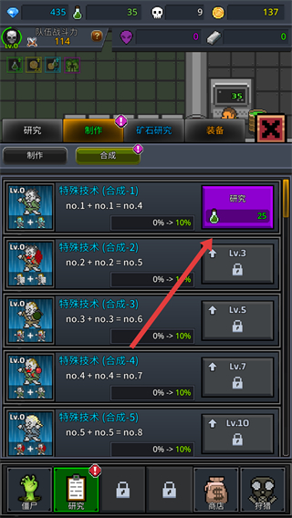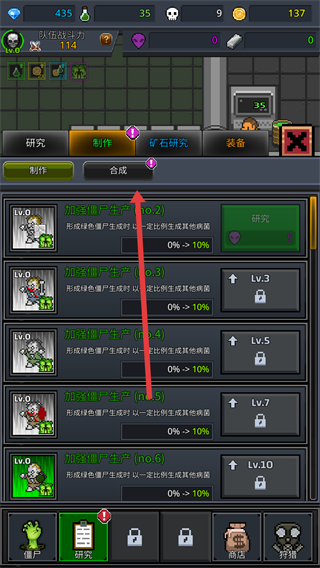 -合成僵尸,開發(fā)出高等級的僵尸;